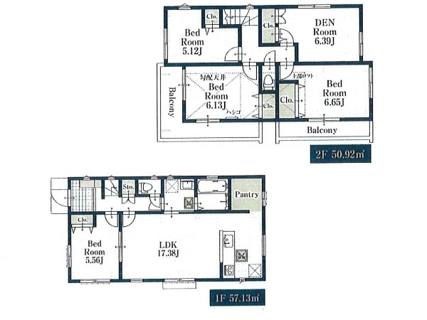 横浜市青葉区の閑静な住宅街 広々バルコニーが魅力のお庭付き新築2階建 パントリーやグルニエなど収納豊富