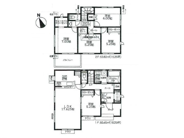 南側道路に面した整形地 敷地面積約45坪 カースペース2台 5LDK グルニエ・WICなど充実の収納