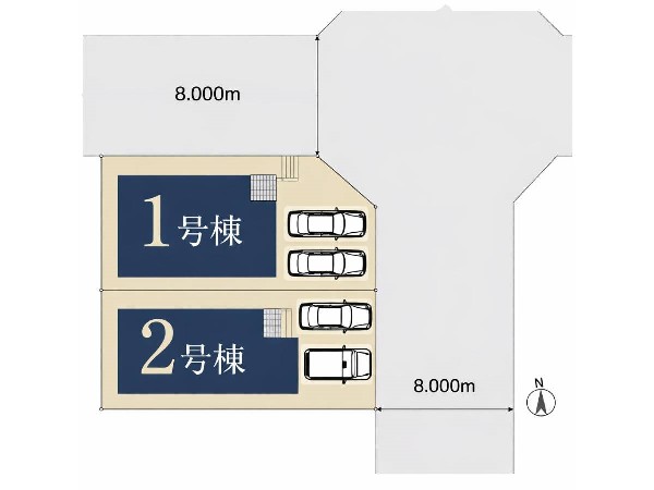 「江田」駅 徒歩10分の好立地 前面道路幅8m 閑静な住宅地の2階建て 1号棟は開放感ある角地