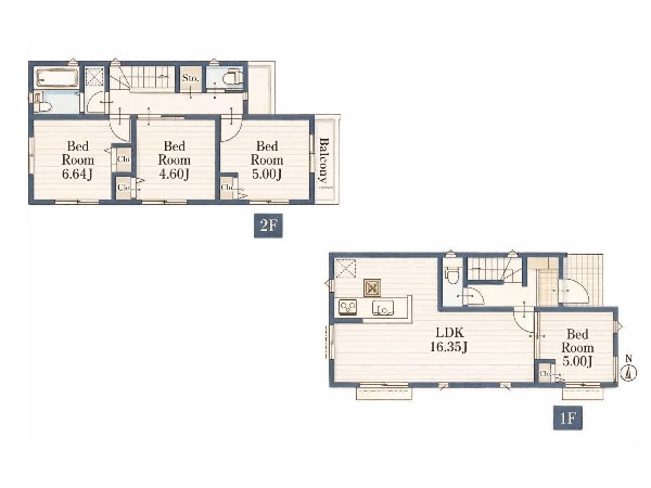 「江田」駅 徒歩10分の好立地 前面道路幅8m 閑静な住宅地の2階建て 全室南向きで日当たり良好