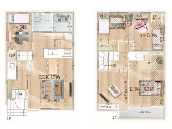 | 設備 | 都市ガス、公営水道、下水、駐車場2台以上、区画整理地内、整形地、緑豊かな住宅地、閑静な住宅地、都市近郊、地盤調査済、前道6m以上、市街地が近い、周辺交通量少なめ、始発駅、2沿線以上利用可、小学校徒歩10分以内、公園5分以内、システムキッチン、ガスコンロ、ガス3口、カウンターキッチン、対面キッチン、浄水器、ユニットバス、追い焚き、浴室乾燥機、ウォシュレット、オートバス付き、トイレ2ヶ所、浴室1坪以上、浴室に窓、暖房便座、浴室暖房、バルコニー、2階建、LDK15畳以上、全室2面採光、東南向き、フローリング、全室フローリング、リビング階段、クローゼット、ウォークインクローゼット、収納、床下収納、下駄箱、全居室収納、シャンプドレッサー付き、年内入居可、モニタ付きインターフォン、ペアガラス、火災警報器、通風良好、陽当り良好、24時間換気システム、ウォークインクローゼット、対面キッチン、都市ガス、整形地、建物10年保証 |