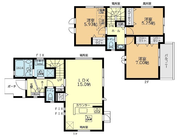 設備 | 都市ガス、公営水道、下水、駐車場1台、緑豊かな住宅地、閑静な住宅地、スーパーが近い(10分以内)、小学校徒歩10分以内、公園5分以内、コンビニ5分以内、対面キッチン、パントリー、都市ガス、システムキッチン、ガス3口、カウンターキッチン、対面キッチン、食器洗浄機、浄水器、勝手口、I型キッチン、パントリー(食器・食品の収納庫)、ユニットバス、追い焚き、浴室乾燥機、ウォシュレット、トイレ2ヶ所、浴室1坪以上、浴室に窓、暖房便座、浴室暖房、南面バルコニー、2階建、LDK15畳以上、全室2面採光、フローリング、スマートキー、クローゼット、収納、床下収納、下駄箱、全居室収納、シャンプドレッサー付き、モニタ付きインターフォン、カードキー、ペアガラス、24時間換気システム、建物10年保証 |