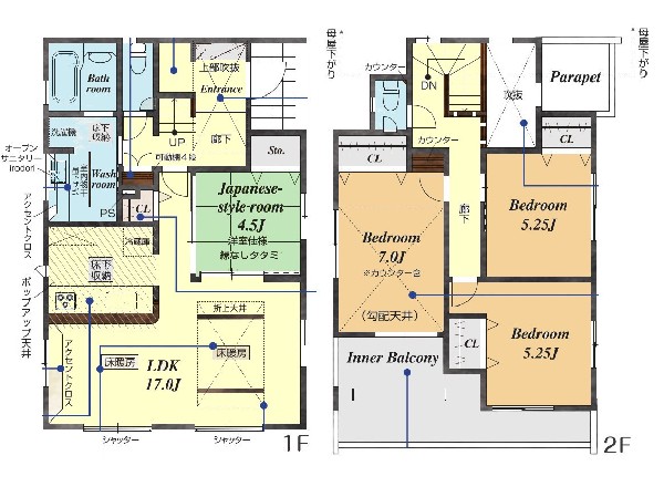 | 設備 | 都市ガス、公営水道、下水、吹き抜け、外壁サイディング、駐車場2台以上、緑豊かな住宅地、閑静な住宅地、南側道路面す、スーパーが近い(10分以内)、小学校徒歩10分以内、公園5分以内、対面キッチン、都市ガス、システムキッチン、ガス3口、対面キッチン、食器洗浄機、I型キッチン、ユニットバス、追い焚き、浴室乾燥機、ウォシュレット、トイレ2ヶ所、浴室に窓、暖房便座、浴室暖房、バルコニー、ワイドバルコニー、南面バルコニー、2階建、LDK15畳以上、和室、採光3面、フローリング、クローゼット、収納、床下収納、下駄箱、全居室収納、シャンプドレッサー付き、フラット35Sに対応、モニタ付きインターフォン、24時間換気システム、建物10年保証、勾配天井 |