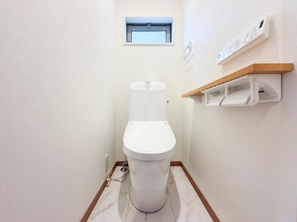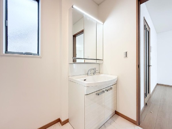 | 設備 | 都市ガス、公営水道、下水、緑豊かな住宅地、閑静な住宅地、前道6m以上、中学校徒歩10分以内、保育施設・幼稚園5分以内、公園5分以内、システムキッチン、対面キッチン、食器洗浄機、浄水器、浴室乾燥機、ウォシュレット、トイレ2ヶ所、浴室1坪以上、浴室に窓、2階建、LDK15畳以上、全室2面採光、リビング階段、ウォークインクローゼット、床下収納、全居室収納、シューズインクローク、シャンプドレッサー付き、フラット35Sに対応、モニタ付きインターフォン、ペアガラス、建物10年保証 |