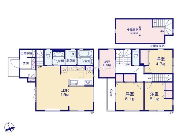 | 備考 | 全館空調搭載住宅 長期優良住宅+エコキュート搭載 土間収納やグルニエ、パントリーなどの充実の収納スペース完備 |