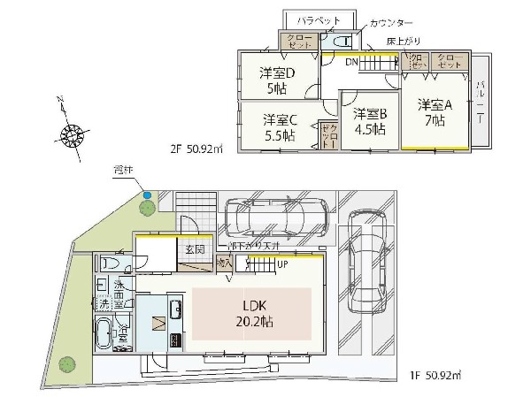 全棟駐車2台の広々とした敷地。ご家族のライフスタイルに合わせて、お好みの間取りをお選びいただけます。