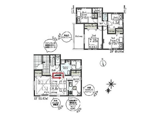 | 設備 | 都市ガス、公営水道、下水、駐車場2台以上、緑豊かな住宅地、閑静な住宅地、角地、都市近郊、開発分譲地内、地盤調査済、市街地が近い、隣家との間隔が大きい、周辺交通量少なめ、2沿線以上利用可、公園5分以内、太陽光発電システム、対面キッチン、パントリー、都市ガス、システムキッチン、ガスコンロ、ガス3口、カウンターキッチン、対面キッチン、食器洗浄機、浄水器、アイランドキッチン、パントリー(食器・食品の収納庫)、ユニットバス、追い焚き、浴室乾燥機、ウォシュレット、オートバス付き、トイレ2ヶ所、浴室1坪以上、浴室に窓、暖房便座、浴室暖房、バルコニー、2階建、LDK18畳以上、太陽光発電システム、採光3面、全室2面採光、フローリング、全室フローリング、クローゼット、収納、床下収納、下駄箱、全居室収納、シャンプドレッサー付き、モニタ付きインターフォン、ペアガラス、火災警報器、通風良好、陽当り良好、24時間換気システム、建物10年保証 |