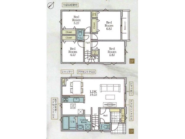 | 設備 | 都市ガス、公営水道、下水、省エネルギー対策、駐車場2台以上、整形地、緑豊かな住宅地、平坦地、都市近郊、地盤調査済、市街地が近い、隣家との間隔が大きい、周辺交通量少なめ、2沿線以上利用可、保育施設・幼稚園5分以内、公園5分以内、コンビニ5分以内、シューズインクローク、対面キッチン、都市ガス、整形地、システムキッチン、ガス3口、対面キッチン、食器洗浄機、浄水器、ユニットバス、追い焚き、浴室乾燥機、ウォシュレット、オートバス付き、トイレ2ヶ所、浴室1坪以上、浴室に窓、暖房便座、浴室暖房、バルコニー、2階建、LDK18畳以上、採光3面、全室2面採光、フローリング、全室フローリング、リビング階段、クローゼット、収納、床下収納、下駄箱、全居室収納、シューズインクローク、シャンプドレッサー付き、フラット35Sに対応、モニタ付きインターフォン、ペアガラス、火災警報器、通風良好、陽当り良好、24時間換気システム、建物10年保証 |