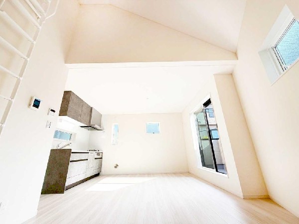 | 設備 | 個別LPG、公営水道、下水、緑豊かな住宅地、閑静な住宅地、スーパーが近い(10分以内)、2沿線以上利用可、小学校徒歩10分以内、公園5分以内、コンビニ5分以内、システムキッチン、ガス3口、食器洗浄機、浄水器、I型キッチン、ユニットバス、追い焚き、浴室乾燥機、ウォシュレット、浴室に窓、暖房便座、バルコニー、南面バルコニー、2階建、ロフト、採光2面、採光3面、全室2面採光、フローリング、リビング階段、クローゼット、収納、収納3ヶ所、全居室収納、シャンプドレッサー付き、モニタ付きインターフォン、インターフォン、ペアガラス、24時間換気システム、建物10年保証、勾配天井 |