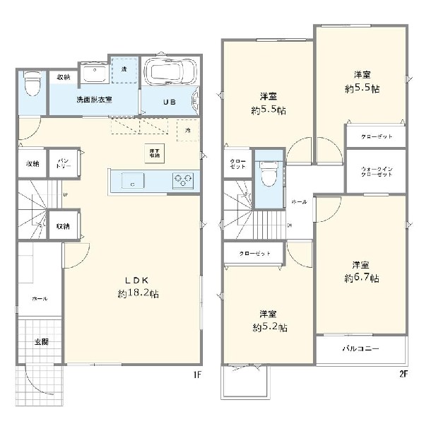 | 設備 | 都市ガス、公営水道、下水、駐車場2台以上、緑豊かな住宅地、閑静な住宅地、南側道路面す、スーパーが近い(10分以内)、2沿線以上利用可、小学校徒歩10分以内、保育施設・幼稚園5分以内、公園5分以内、ウォークインクローゼット、対面キッチン、パントリー、都市ガス、システムキッチン、ガス3口、対面キッチン、I型キッチン、パントリー(食器・食品の収納庫)、ユニットバス、追い焚き、ウォシュレット、トイレ2ヶ所、浴室に窓、暖房便座、バルコニー、南面バルコニー、2階建、LDK18畳以上、採光2面、全室2面採光、フローリング、リビング階段、クローゼット、ウォークインクローゼット、収納、床下収納、下駄箱、全居室収納、シャンプドレッサー付き、モニタ付きインターフォン、インターフォン、24時間換気システム、建物10年保証 |