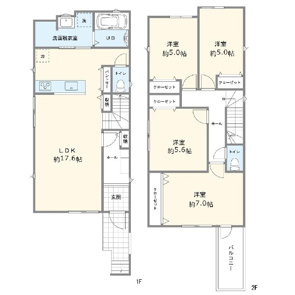 | 設備 | 都市ガス、公営水道、下水、駐車場2台以上、緑豊かな住宅地、閑静な住宅地、南側道路面す、スーパーが近い(10分以内)、2沿線以上利用可、小学校徒歩10分以内、保育施設・幼稚園5分以内、公園5分以内、対面キッチン、パントリー、都市ガス、システムキッチン、ガス3口、対面キッチン、I型キッチン、パントリー(食器・食品の収納庫)、ユニットバス、追い焚き、ウォシュレット、トイレ2ヶ所、浴室に窓、暖房便座、バルコニー、バルコニー2面、南面バルコニー、2階建、LDK15畳以上、採光2面、全室2面採光、フローリング、リビング階段、クローゼット、収納、床下収納、下駄箱、全居室収納、シャンプドレッサー付き、モニタ付きインターフォン、インターフォン、24時間換気システム、建物10年保証 |