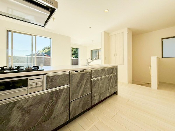 | 設備 | 都市ガス、公営水道、下水、緑豊かな住宅地、閑静な住宅地、角地、都市近郊、2沿線以上利用可、小学校徒歩10分以内、公園5分以内、駐車場1台、システムキッチン、ガス3口、対面キッチン、食器洗浄機、浄水器、I型キッチン、ユニットバス、追い焚き、浴室乾燥機、ウォシュレット、トイレ2ヶ所、浴室1坪以上、浴室に窓、暖房便座、バルコニー、南面バルコニー、2階建、LDK15畳以上、省エネ給湯器、採光2面、全室2面採光、フローリング、全室フローリング、リビング階段、クローゼット、収納、全居室収納、シャンプドレッサー付き、南庭、モニタ付きインターフォン、インターフォン、通風良好、陽当り良好、24時間換気システム、対面キッチン、都市ガス |