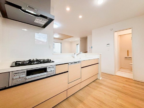 設備 | 都市ガス、公営水道、下水、緑豊かな住宅地、閑静な住宅地、スーパーが近い(10分以内)、2沿線以上利用可、ウォークインクローゼット、対面キッチン、都市ガス、システムキッチン、ガス3口、対面キッチン、I型キッチン、ユニットバス、追い焚き、浴室乾燥機、ウォシュレット、トイレ2ヶ所、浴室に窓、暖房便座、浴室暖房、バルコニー2面、南面バルコニー、2階建、LDK15畳以上、採光3面、全室2面採光、全室フローリング、リビング階段、クローゼット、ウォークインクローゼット、収納、床下収納、下駄箱、全居室収納、シャンプドレッサー付き、フラット35Sに対応、モニタ付きインターフォン、ペアガラス、全居室複層ガラスか複層サッシ、24時間換気システム、建物10年保証 |