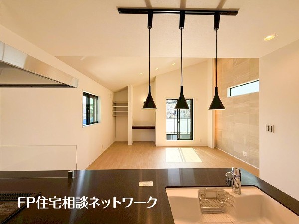 | 設備 | 都市ガス、公営水道、下水、駐車場1台、緑豊かな住宅地、閑静な住宅地、南側道路面す、前道6m以上、2沿線以上利用可、中学校徒歩10分以内、保育施設・幼稚園5分以内、公園5分以内、コンビニ5分以内、対面キッチン、都市ガス、システムキッチン、ガス3口、対面キッチン、食器洗浄機、浄水器、I型キッチン、ユニットバス、追い焚き、浴室乾燥機、ウォシュレット、オートバス付き、トイレ2ヶ所、浴室に窓、暖房便座、浴室暖房、バルコニー、南面バルコニー、2階建、LDK18畳以上、採光2面、採光3面、全室フローリング、リビング階段、クローゼット、収納、床下収納、下駄箱、全居室収納、シャンプドレッサー付き、フラット35Sに対応、モニタ付きインターフォン、ペアガラス、全居室複層ガラスか複層サッシ、24時間換気システム、建物10年保証、勾配天井 |