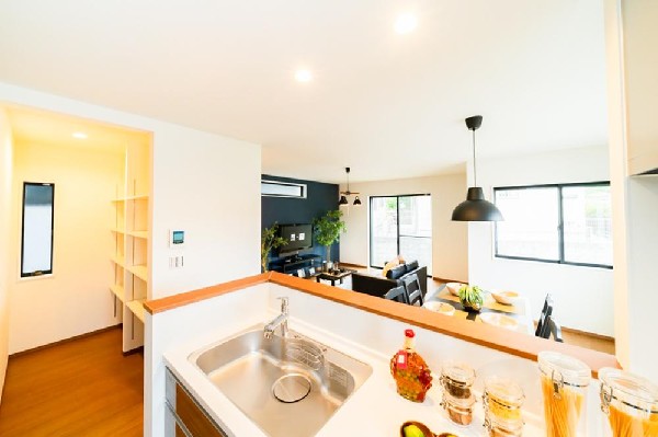 京急逗子線「六浦」駅利用。緑豊かで閑静な住宅地。会話が弾む対面キッチン。カップボード、ウォークインクローゼット、床下収納、パントリー等設備充実。カースペース2台。