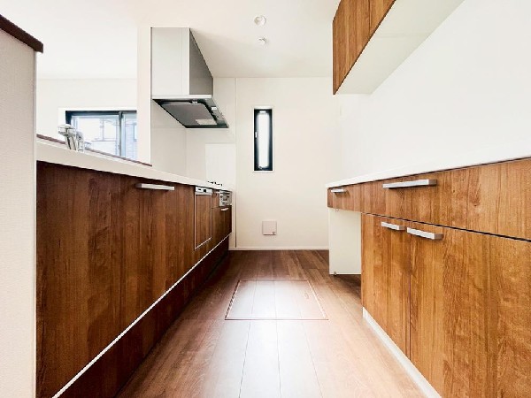 | 設備 | 都市ガス、公営水道、下水、駐車場1台、整形地、緑豊かな住宅地、閑静な住宅地、南側道路面す、2沿線以上利用可、小学校徒歩10分以内、ウォークインクローゼット、対面キッチン、都市ガス、システムキッチン、対面キッチン、食器洗浄機、浄水器、I型キッチン、パントリー(食器・食品の収納庫)、ユニットバス、追い焚き、浴室乾燥機、ウォシュレット、トイレ2ヶ所、浴室に窓、バルコニー、2階建、LDK15畳以上、全室2面採光、フローリング、クローゼット、ウォークインクローゼット、収納、床下収納、全居室収納、シャンプドレッサー付き、フラット35Sに対応、モニタ付きインターフォン、24時間換気システム、建物10年保証 |