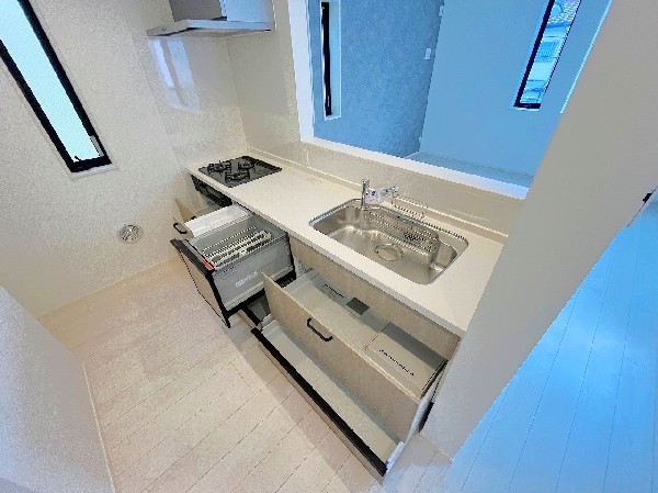 設備 | 都市ガス、公営水道、下水、ビルトインガレージ、駐車場1台、整形地、閑静な住宅地、平坦地、都市近郊、地盤調査済、南側道路面す、周辺交通量少なめ、駅まで平坦、2沿線以上利用可、小学校徒歩10分以内、中学校徒歩10分以内、保育施設・幼稚園5分以内、公園5分以内、対面キッチン、都市ガス、システムキッチン、ガスコンロ、ガス3口、対面キッチン、食器洗浄機、浄水器、ユニットバス、追い焚き、浴室乾燥機、ウォシュレット、オートバス付き、トイレ2ヶ所、浴室1坪以上、浴室に窓、暖房便座、浴室暖房、バルコニー、バルコニー2面、南面バルコニー、2階建、採光3面、全室南向き、南向き、全室2面採光、フローリング、全室フローリング、リビング階段、クローゼット、収納、下駄箱、全居室収納、シャンプドレッサー付き、年内入居可、モニタ付きインターフォン、ペアガラス、火災警報器、通風良好、陽当り良好、24時間換気システム、建物10年保証 |