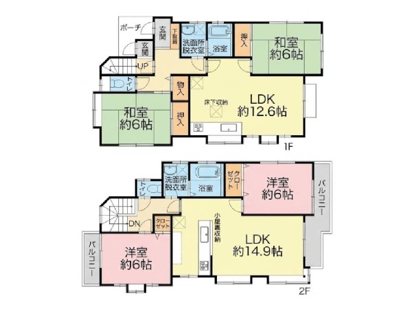 | 設備 | 都市ガス、公営水道、下水、駐車場2台以上、緑豊かな住宅地、閑静な住宅地、スーパーが近い(10分以内)、2沿線以上利用可、公園5分以内、システムキッチン、ガス3口、対面キッチン、I型キッチン、トイレ2ヶ所、バス2ヶ所、浴室に窓、バルコニー、バルコニー2面、ワイドバルコニー、2階建、和室、採光2面、全室2面採光、フローリング、クローゼット、収納、床下収納、下駄箱、屋根裏収納、全居室収納、シャンプドレッサー付き、対面キッチン、都市ガス |