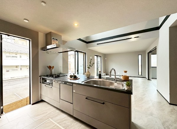 大型ルーフバルコニー+2階バルコニー×2カ所あり! ダイニング上部吹抜けの開放感溢れるLDK 洗面室にガス栓設置 エコジョーズ 南向きのゆったり4LDK 周辺は公園が点在する緑豊かな住環境