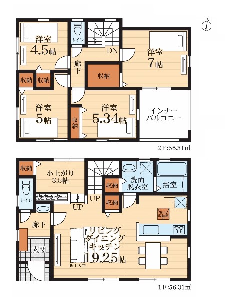 車2台駐車可 インナーバルコニー リビングに3.5帖小上がり、備付けカウンターあり ウォークインクC