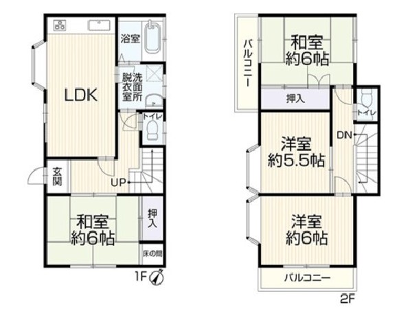 | 設備 | 都市ガス、公営水道、下水、スレート葺、駐車場1台、高台に立地、緑豊かな住宅地、閑静な住宅地、都市近郊、南側道路面す、市街地が近い、田園風景、スーパーが近い(10分以内)、始発駅、2沿線以上利用可、公園5分以内、都市ガス、システムキッチン、I型キッチン、ユニットバス、浴室乾燥機、ウォシュレット、トイレ2ヶ所、浴室1坪以上、暖房便座、バルコニー、バルコニー2面、南面バルコニー、内外装リフォーム、2階建、和室、出窓、東南向き、クッションフロア、押し入れ、収納、床下収納、収納2ヶ所、シャンプドレッサー付き、庭、年内入居可、モニタ付きインターフォン、通風良好、陽当り良好 |