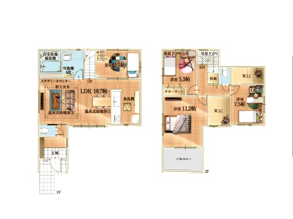 | 設備 | 都市ガス、公営水道、下水、駐車場2台以上、緑豊かな住宅地、閑静な住宅地、南側道路面す、スーパーが近い(10分以内)、2沿線以上利用可、小学校徒歩10分以内、中学校徒歩10分以内、公園5分以内、ウォークインクローゼット、対面キッチン、都市ガス、システムキッチン、ガス3口、対面キッチン、食器洗浄機、I型キッチン、ユニットバス、追い焚き、浴室乾燥機、ウォシュレット、トイレ2ヶ所、暖房便座、浴室暖房、バルコニー、南面バルコニー、2階建、LDK18畳以上、採光2面、全室2面採光、フローリング、リビング階段、クローゼット、ウォークインクローゼット、収納、床下収納、下駄箱、全居室収納、シャンプドレッサー付き、モニタ付きインターフォン、インターフォン、24時間換気システム、建物10年保証 |