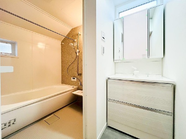 | 設備 | 都市ガス、公営水道、下水、駐車場2台以上、緑豊かな住宅地、閑静な住宅地、対面キッチン、都市ガス、システムキッチン、ガス3口、カウンターキッチン、対面キッチン、I型キッチン、ユニットバス、追い焚き、ウォシュレット、トイレ2ヶ所、浴室に窓、暖房便座、バルコニー、2階建、LDK15畳以上、全室2面採光、フローリング、リビング階段、クローゼット、収納、床下収納、下駄箱、全居室収納、シャンプドレッサー付き、フラット35Sに対応、モニタ付きインターフォン、24時間換気システム、建物10年保証 |