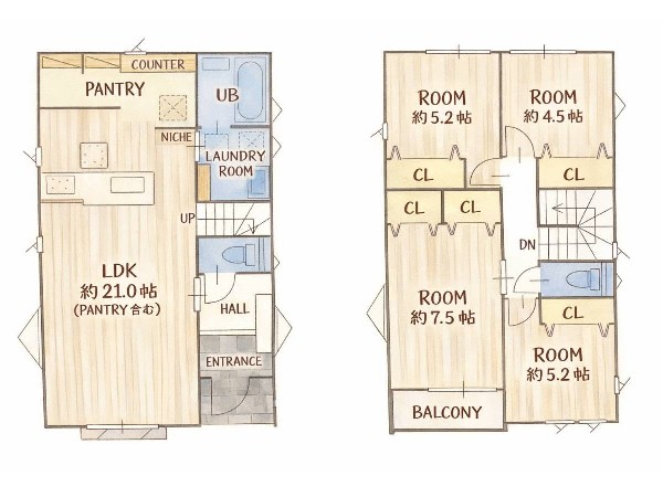 宮前平駅徒歩14分 カースペース2台有 パントリーやリネン庫付きのランドリールームなど奥様に嬉しい住設備付き