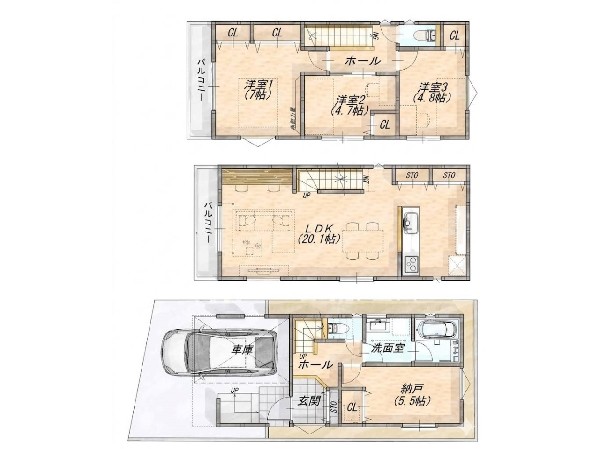 | 特記事項 | 景観法:有/宅地造成工事規制区域:有/高度地区:有/準防火地域:有/日影制限:有/高さ限度:有/1階車庫面積約9.11平米含、通路部分:持分1/2有、間取Sは納戸。 / |