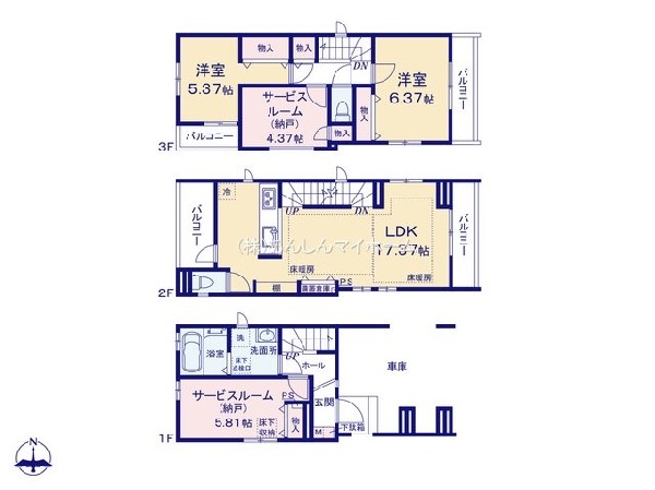 | 特記事項 | 景観法:有/宅地造成工事規制区域:有/高度地区:有/準防火地域:有/日影制限:有/高さ限度:有/建物面積に1階車庫面積11.11平米・備蓄倉庫面積0.62平米含む、間取りSは納戸。 / |