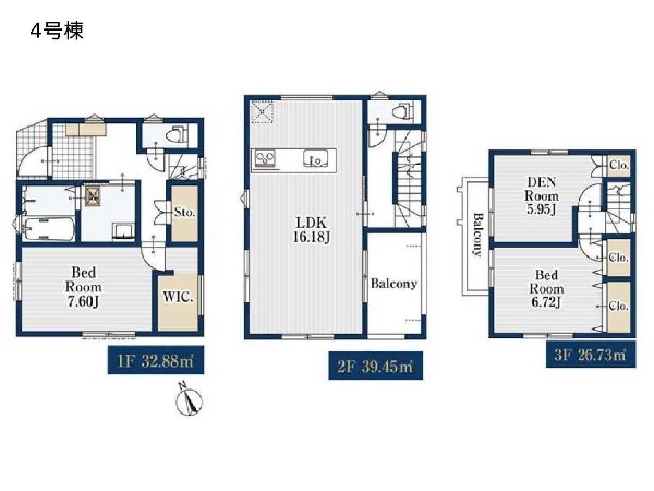 新築デザイナーズ分譲住宅全4棟 Wic等収納たっぷりの3階建 全室2面採光