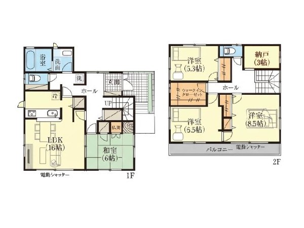 | 設備 | 都市ガス、公営水道、下水、防犯シャッター、駐車場2台以上、緑豊かな住宅地、閑静な住宅地、角地、土地50坪以上、前道6m以上、スーパーが近い(10分以内)、2沿線以上利用可、保育施設・幼稚園5分以内、公園5分以内、コンビニ5分以内、ウォークインクローゼット、対面キッチン、都市ガス、システムキッチン、ガス3口、対面キッチン、I型キッチン、ユニットバス、ウォシュレット、トイレ2ヶ所、浴室1坪以上、浴室に窓、バルコニー、ワイドバルコニー、南面バルコニー、2階建、LDK15畳以上、和室、採光2面、全室2面採光、フローリング、クローゼット、ウォークインクローゼット、収納、下駄箱、屋根裏収納、全居室収納、モニタ付きインターフォン、インターフォン、建物10年保証、電動シャッター |