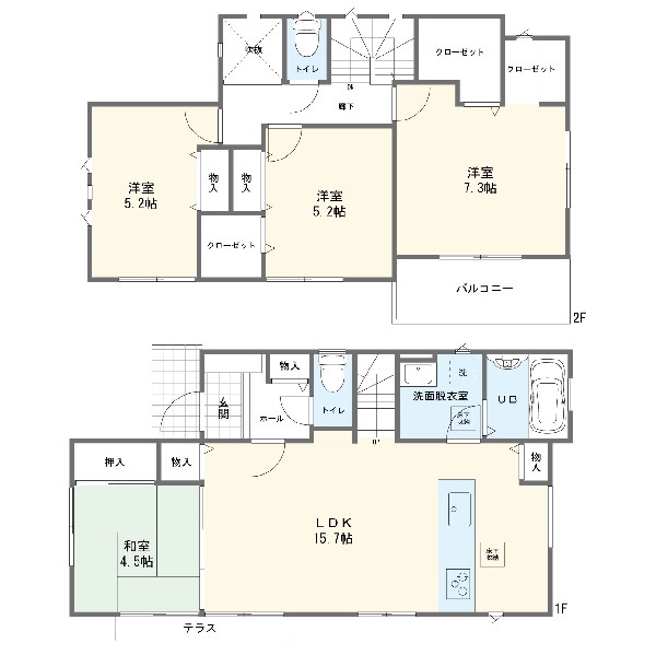 | 設備 | 都市ガス、公営水道、下水、吹き抜け、駐車場1台、緑豊かな住宅地、閑静な住宅地、平坦地、都市近郊、開発分譲地内、周辺交通量少なめ、スーパーが近い(10分以内)、小学校徒歩10分以内、対面キッチン、都市ガス、システムキッチン、ガス3口、カウンターキッチン、対面キッチン、食器洗浄機、浄水器、I型キッチン、パントリー(食器・食品の収納庫)、ユニットバス、追い焚き、浴室乾燥機、ウォシュレット、トイレ2ヶ所、浴室1坪以上、浴室に窓、暖房便座、節水型トイレ、浴室暖房、バルコニー、南面バルコニー、2階建、LDK15畳以上、和室、省エネ給湯器、採光3面、南向き、フローリング、クローゼット、収納、床下収納、下駄箱、全居室収納、シャンプドレッサー付き、南庭、フラット35Sに対応、モニタ付きインターフォン、ペアガラス、通風良好、陽当り良好、24時間換気システム、建物10年保証 |