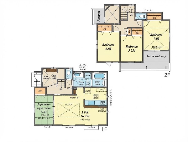 | 設備 | 都市ガス、公営水道、下水、吹き抜け、駐車場2台以上、緑豊かな住宅地、閑静な住宅地、前道6m以上、2沿線以上利用可、保育施設・幼稚園5分以内、公園5分以内、対面キッチン、都市ガス、システムキッチン、ガス3口、カウンターキッチン、対面キッチン、I型キッチン、ユニットバス、追い焚き、ウォシュレット、トイレ2ヶ所、浴室に窓、暖房便座、バルコニー、南面バルコニー、2階建、LDK15畳以上、和室、採光2面、全室南西向き、フローリング、クローゼット、収納、床下収納、下駄箱、全居室収納、シャンプドレッサー付き、モニタ付きインターフォン、インターフォン、24時間換気システム、建物10年保証、勾配天井 |