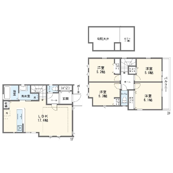 | 設備 | 都市ガス、公営水道、下水、駐車場1台、緑豊かな住宅地、閑静な住宅地、南側道路面す、スーパーが近い(10分以内)、2沿線以上利用可、総合病院徒歩10分以内、小学校徒歩10分以内、保育施設・幼稚園5分以内、シューズインクローク、対面キッチン、都市ガス、システムキッチン、ガス3口、カウンターキッチン、対面キッチン、食器洗浄機、浄水器、I型キッチン、ユニットバス、追い焚き、浴室乾燥機、ウォシュレット、トイレ2ヶ所、浴室1坪以上、浴室に窓、暖房便座、浴室暖房、バルコニー、ワイドバルコニー、南面バルコニー、2階建、ロフト、LDK15畳以上、全室2面採光、フローリング、リビング階段、クローゼット、収納、屋根裏収納、全居室収納、シューズインクローク、シャンプドレッサー付き、フラット35Sに対応、モニタ付きインターフォン、ペアガラス、通風良好、陽当り良好、24時間換気システム、建物10年保証、勾配天井、電動シャッター |