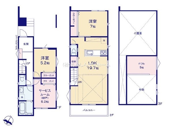 | 備考 | 最新設備や個性あるプランが魅力。住み心地の良さにこだわった全3邸 開放感ある吹き抜け、小屋裏収納有 |