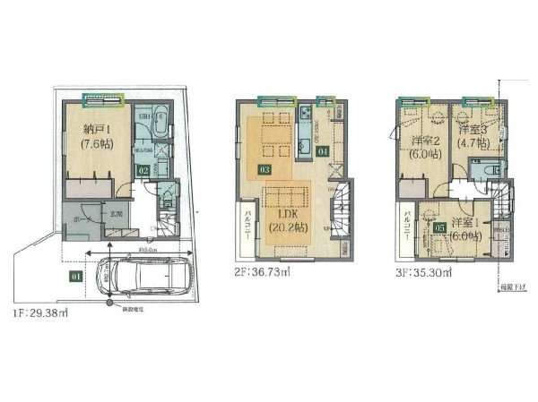 | 設備 | 都市ガス、公営水道、下水、宅配ロッカー、省エネルギー対策、EV車充電設備、駐車場1台、整形地、緑豊かな住宅地、閑静な住宅地、都市近郊、地盤調査済、市街地が近い、周辺交通量少なめ、スーパーが近い(10分以内)、駅まで平坦、2沿線以上利用可、小学校徒歩10分以内、中学校徒歩10分以内、保育施設・幼稚園5分以内、公園5分以内、コンビニ5分以内、対面キッチン、パントリー、都市ガス、整形地、システムキッチン、ガスコンロ、ガス3口、カウンターキッチン、対面キッチン、食器洗浄機、浄水器、パントリー(食器・食品の収納庫)、ユニットバス、追い焚き、浴室乾燥機、ウォシュレット、トイレ2ヶ所、浴室1坪以上、浴室に窓、暖房便座、浴室暖房、室内洗濯物干し、バルコニー、南面バルコニー、3階建以上、LDK20畳以上、採光3面、南向き、全室2面採光、フローリング、全室フローリング、リビング階段、クローゼット、収納、下駄箱、シャンプドレッサー付き、フラット35Sに対応、年度内入居可、モニタ付きインターフォン、ペアガラス、火災警報器、通風良好、陽当り良好、24時間換気システム、建物10年保証 |