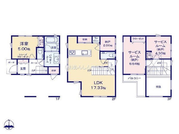 | 備考 | 「武蔵新城」駅 徒歩11分 南道路角地 吹き抜けで解放感のあるLDK 納戸やパントリーなど収納充実 |