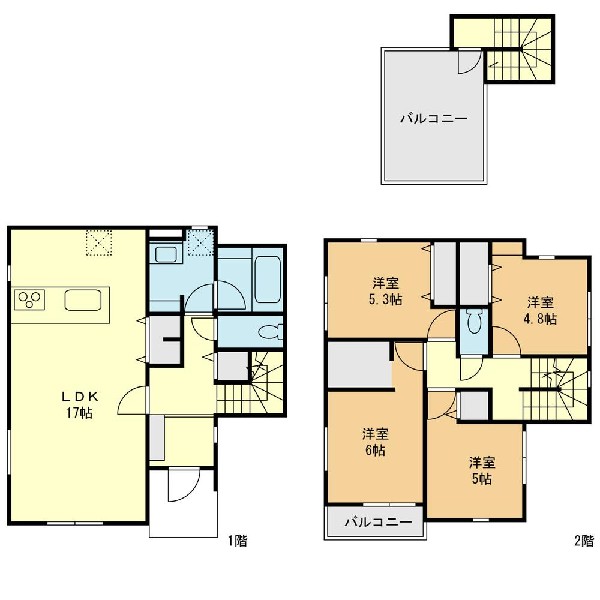 | 設備 | 公営水道、下水、駐車場1台、緑豊かな住宅地、閑静な住宅地、角地、南側道路面す、前道6m以上、周辺交通量少なめ、スーパーが近い(10分以内)、2沿線以上利用可、小学校徒歩10分以内、公園5分以内、コンビニ5分以内、システムキッチン、ガス3口、対面キッチン、食器洗浄機、I型キッチン、ユニットバス、追い焚き、浴室乾燥機、ウォシュレット、トイレ2ヶ所、浴室1坪以上、浴室に窓、暖房便座、浴室暖房、バルコニー、ルーフバルコニー、南面バルコニー、2階建、LDK15畳以上、全室2面採光、フローリング、クローゼット、収納、下駄箱、全居室収納、シャンプドレッサー付き、モニタ付きインターフォン、陽当り良好、24時間換気システム、対面キッチン、都市ガス |