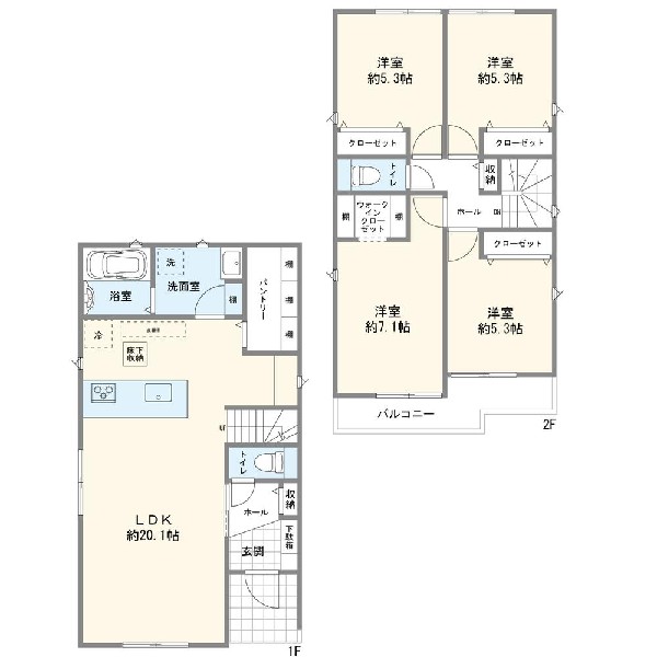 | 設備 | 都市ガス、公営水道、下水、駐車場2台以上、緑豊かな住宅地、閑静な住宅地、前道6m以上、スーパーが近い(10分以内)、2沿線以上利用可、公園5分以内、コンビニ5分以内、ウォークインクローゼット、対面キッチン、都市ガス、システムキッチン、対面キッチン、食器洗浄機、浄水器、パントリー(食器・食品の収納庫)、ユニットバス、浴室乾燥機、ウォシュレット、トイレ2ヶ所、浴室に窓、バルコニー、南面バルコニー、2階建、LDK20畳以上、採光2面、東南向き、フローリング、全室フローリング、リビング階段、クローゼット、ウォークインクローゼット、収納、床下収納、下駄箱、全居室収納、シャンプドレッサー付き、フラット35Sに対応、モニタ付きインターフォン、ペアガラス、全居室複層ガラスか複層サッシ、24時間換気システム、建物10年保証 |