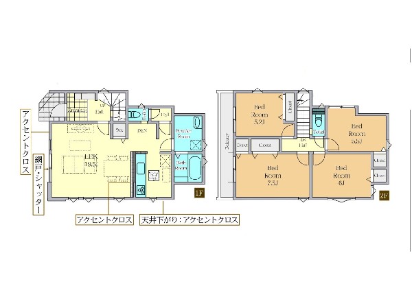 | 設備 | 都市ガス、公営水道、下水、防犯シャッター、駐車場2台以上、緑豊かな住宅地、閑静な住宅地、スーパーが近い(10分以内)、2沿線以上利用可、小学校徒歩10分以内、公園5分以内、対面キッチン、都市ガス、システムキッチン、ガス3口、カウンターキッチン、対面キッチン、食器洗浄機、I型キッチン、ユニットバス、追い焚き、浴室乾燥機、ウォシュレット、トイレ2ヶ所、浴室1坪以上、浴室に窓、暖房便座、バルコニー、ワイドバルコニー、2階建、LDK18畳以上、採光2面、全室2面採光、フローリング、クローゼット、収納、床下収納、下駄箱、全居室収納、シャンプドレッサー付き、フラット35Sに対応、モニタ付きインターフォン、インターフォン、24時間換気システム、建物10年保証 |