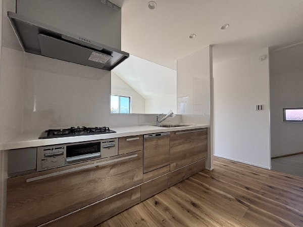 | 設備 | 都市ガス、公営水道、下水、駐車場1台、緑豊かな住宅地、閑静な住宅地、2沿線以上利用可、保育施設・幼稚園5分以内、対面キッチン、都市ガス、眺望良好、システムキッチン、ガス3口、対面キッチン、I型キッチン、ユニットバス、追い焚き、ウォシュレット、トイレ2ヶ所、浴室に窓、暖房便座、バルコニー、2階建、LDK15畳以上、全室2面採光、フローリング、リビング階段、クローゼット、収納、下駄箱、全居室収納、シャンプドレッサー付き、フラット35Sに対応、モニタ付きインターフォン、24時間換気システム、建物10年保証、勾配天井 |