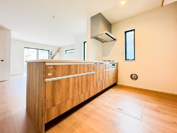 | 設備 | 都市ガス、公営水道、下水、駐車場2台以上、緑豊かな住宅地、閑静な住宅地、始発駅、2沿線以上利用可、小学校徒歩10分以内、保育施設・幼稚園5分以内、公園5分以内、コンビニ5分以内、対面キッチン、パントリー、都市ガス、システムキッチン、ガス3口、対面キッチン、I型キッチン、パントリー(食器・食品の収納庫)、ユニットバス、追い焚き、ウォシュレット、トイレ2ヶ所、浴室に窓、暖房便座、バルコニー、ワイドバルコニー、2階建、LDK18畳以上、全室2面採光、フローリング、クローゼット、収納、床下収納、下駄箱、全居室収納、シャンプドレッサー付き、モニタ付きインターフォン、24時間換気システム、建物10年保証 |