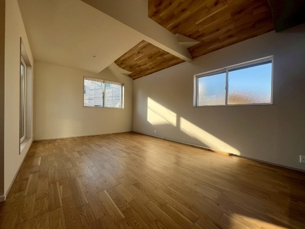 ルーフバルコニー 開放的な勾配天井のリビング ロフト付 主寝室7帖 床暖房、食洗器等設備充実 周辺施設充実