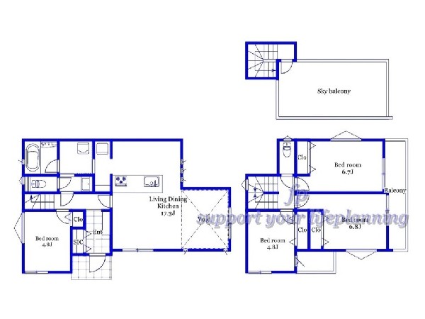 | 備考 | <17号棟>ルーフバルコニー パントリー付キッチン 水回り集中し家事動線良好 開放的な勾配天井リビング |